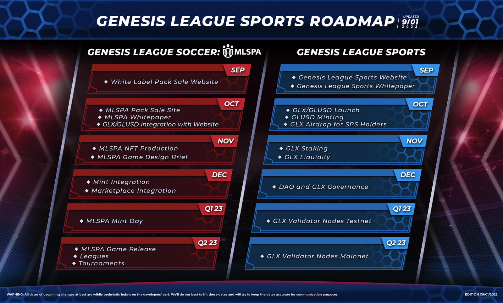 The GLUSD is looking to use two different mechanisms to maintain a $1 peg, seemingly as a response to the soft peg for DEC in Splinterlands breaking. The two mechanisms are the ability to redeem $1 worth of GLX for 1 GLUSD and products being priced in GLUSD at a $1 rate regardless of external exchanges. Lastly, GLGT (too many G-tokens!) is presented as a staking reward, which is reminiscent of the voucher system in Splinterlands, although the use case here is geared primarily towards discounts rather than access. The whitepaper contains lots more details and finishes up with a nice roadmap for both GLS in general and the soccer-specific content.