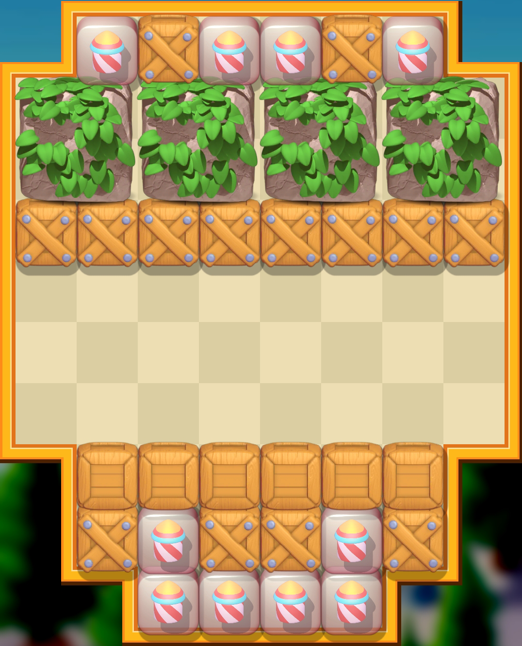 These hide other objects and require adjacent blocks to be removed. Shrubs can be placed onto other objectives, colored blocks, or empty tiles to count as an extra layer and to mask what’s underneath.